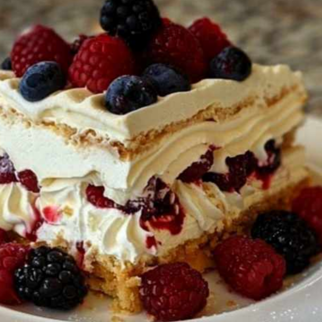 The Lemon Berry Ritz Icebox Cake is a fascinating gastronomic adventure that combines crunchy Ritz crackers, sweet mixed berries, and tart lemon zest in a perfect balance. An homage to the timeless icebox cakes that were popular in early 20th-century America, this dish is a delightfully simple dessert that freezes to perfection the night before. This recipe guarantees joy with every mouthful, making it perfect for those warm months when baking doesn’t seem attractive or when you need a dessert that is easy to make for parties.