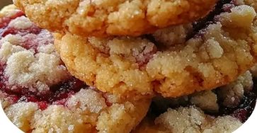 INGREDIENTS:Buttery Raspberry Crumble Cookies with a Sweet Jam Filling