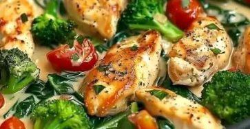 Ingredients:2 cups chicken breast, cubed 1 cup broccoli florets 1 cup spinach leaves 1/4 cup olive oil 1/2 cup chicken…