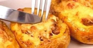 Potatoes filled with meat and cheese, baked twice.