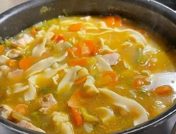 I through everything in the crockpot except the noodles and parsley. I cooked on low for 8 hours. At 7.5 hours I shredded the chicken and put back in and put in the noodles, when the noodles were almost done, I put in the parsley.