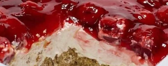 Ingredients:For the Crust:2 cups graham cracker crumbs1/2 cup unsalted butter, melted1/4 cup granulated sugarFor the Cheesecake Layer:16 oz (2 packages) cream cheese, softened1 cup powdered sugar2 tsp vanilla extract1 cup heavy whipping cream (or whipped topping)For the Topping:1 can (21 oz) cherry pie fillingInstructions:1. Make the Crust:In a bowl, mix the graham cracker crumbs, melted butter, and granulated sugar until combined.Press the mixture firmly into the bottom of a 9×13-inch baking dish. Refrigerate while preparing the filling.2. Prepare the Cheesecake Layer:In a large mixing bowl, beat the softened cream cheese, powdered sugar, and vanilla extract until smooth and creamy.In a separate bowl, whip the heavy whipping cream until stiff peaks form (if using whipped topping, skip this step).Gently fold the whipped cream into the cream cheese mixture until well combined.3. Assemble the Dessert:Spread the cheesecake layer evenly over the prepared crust.Spoon the cherry pie filling over the cheesecake layer, spreading it out to cover the top.4. Chill and Serve:Refrigerate the dessert for at least 3-4 hours, or until set.Slice into squares and serve chilled.This easy-to-make cherry cheesecake dessert is a crowd-pleaser that will satisfy any sweet tooth! Enjoy!