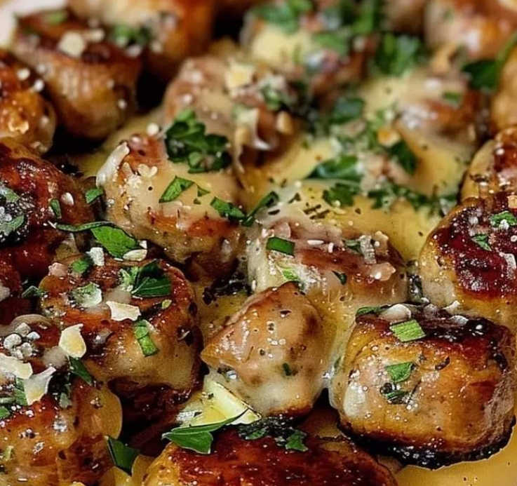 Assemble the dish: Serve the garlic butter sausage bites over the creamy Parmesan pasta. Garnish with extra Parmesan cheese and fresh parsley for a touch of freshness.