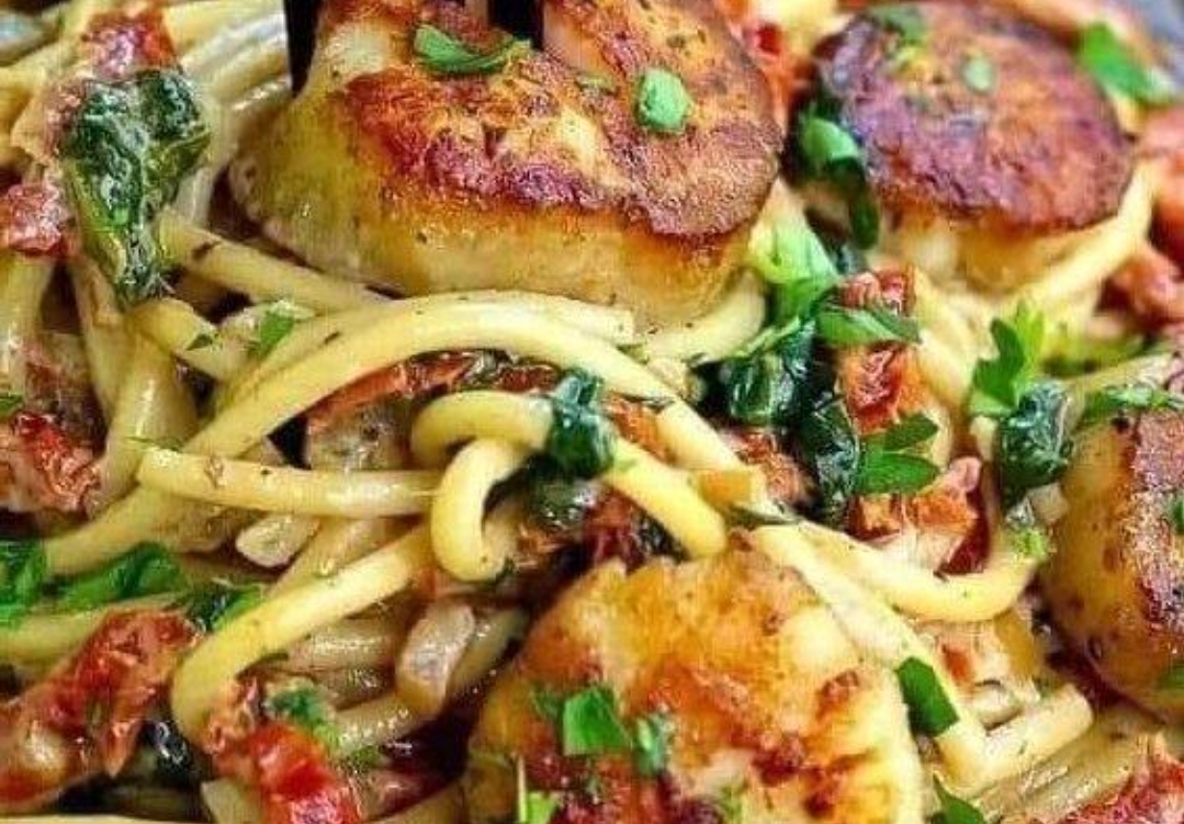 Jumbo Creamy Tuscan Spaghetti with Scallops