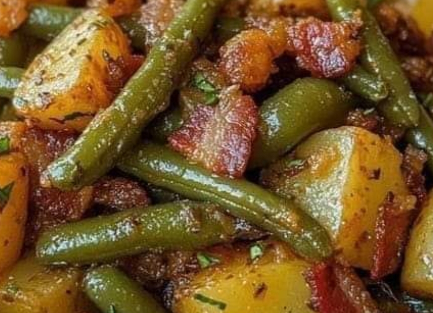 When green beans are done, place potatoes and sausage into pot, stir and enjoy!