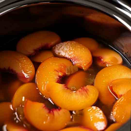 1. Pour the peaches and their juices from the can into a 6-quart slow