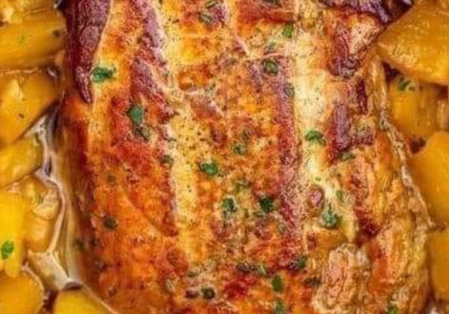 Heat a large pan over medium-high heat. Add oil, once the oil is hot, add the pork loin and brown on each side for about 2-4 minutes or until golden.