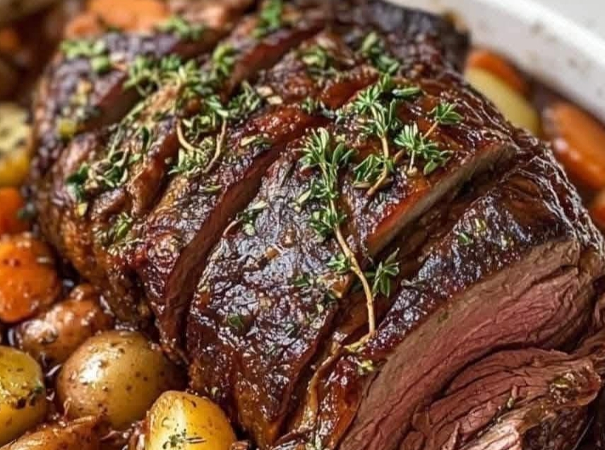 Slice the roast and serve it along with the vegetables. Drizzle with the thickened gravy, if desired.
