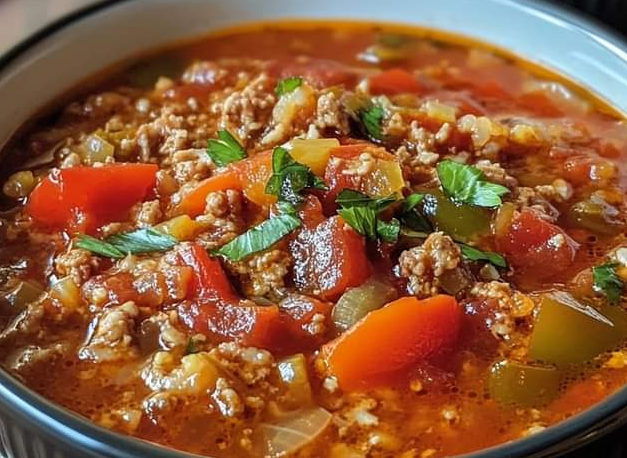 Stuffed Pepper Soup is a simple, flavorful, and hearty dish that delivers all the comforting flavors of stuffed peppers in an easy-to-make soup. With its rich tomato base, savory beef, and sweet bell peppers, it’s the perfect meal to warm you up on a cool day. Pair it with a side of crusty bread for a complete meal, or enjoy it on its own as a satisfying, one-pot dinner.