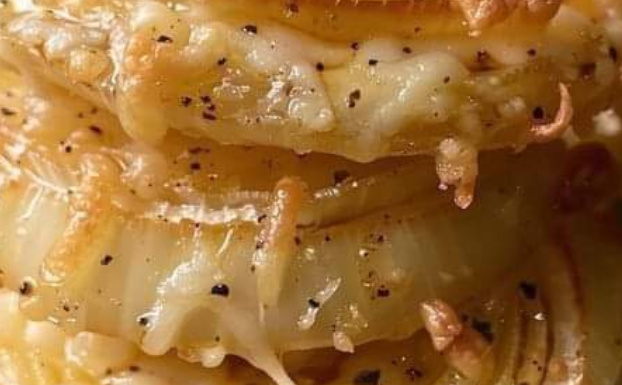- Cut the butter into roughly eight even portions or pats. Distribute these butter pats evenly across the seasoned onion rings in the baking dish.