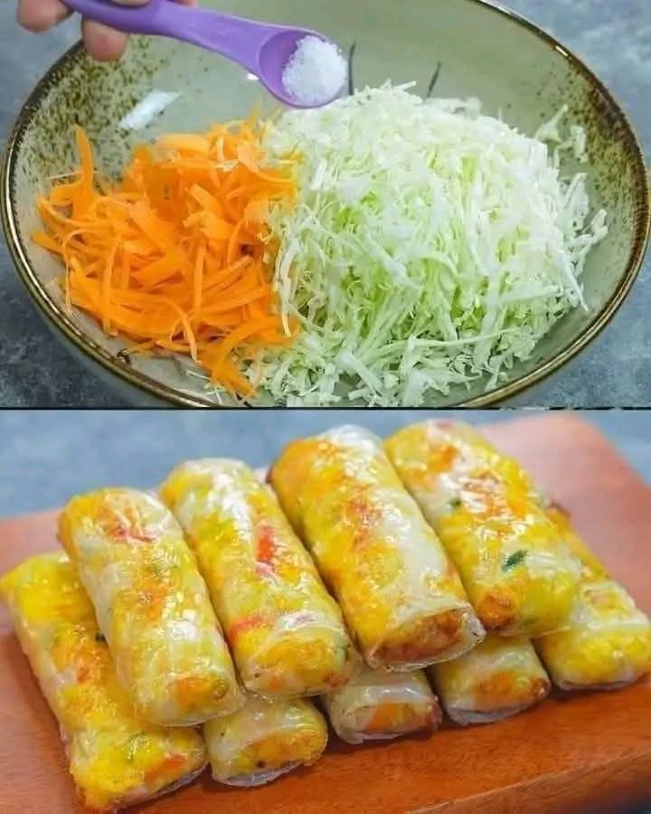 Prepare Filling:I n a large bowl, mix cabbage, carrots, green onions, salt, and pepper.